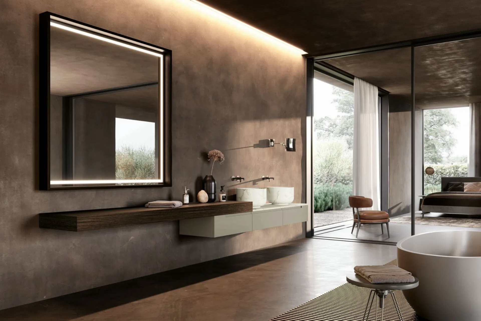 mobili bagno sospesi Kyton 03 di Nova Cucina: scopri l'Arredo Bagno in laccato opaco moderno e arreda il bagno di casa.