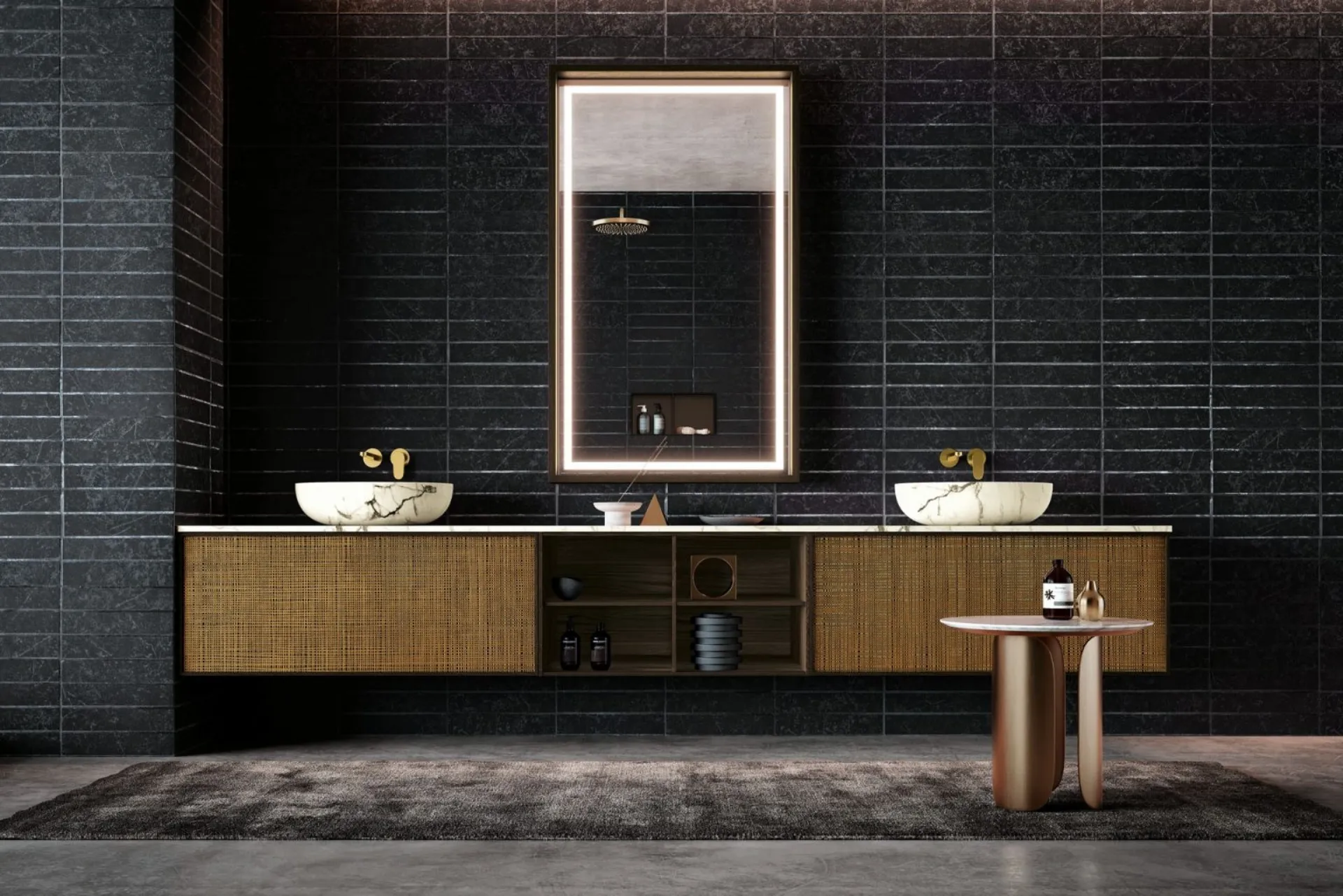 mobili bagno sospesi Planet 02 di Nova Cucina: scopri l'Arredo Bagno in legno design e arreda il bagno di casa.