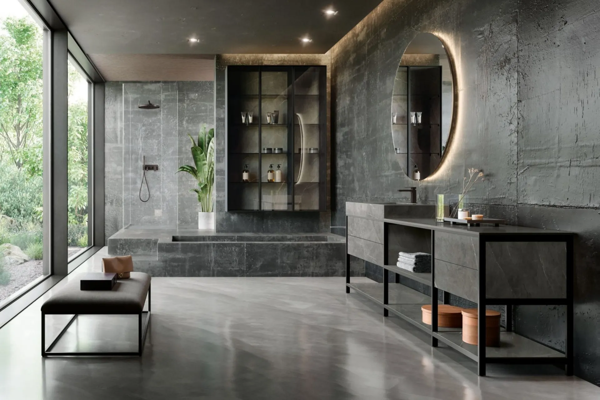 mobili bagno a terra in gres della marca Nova Cucina: clicca e scopri l'arredo bagno design Prime 05 per la stanza del benessere.