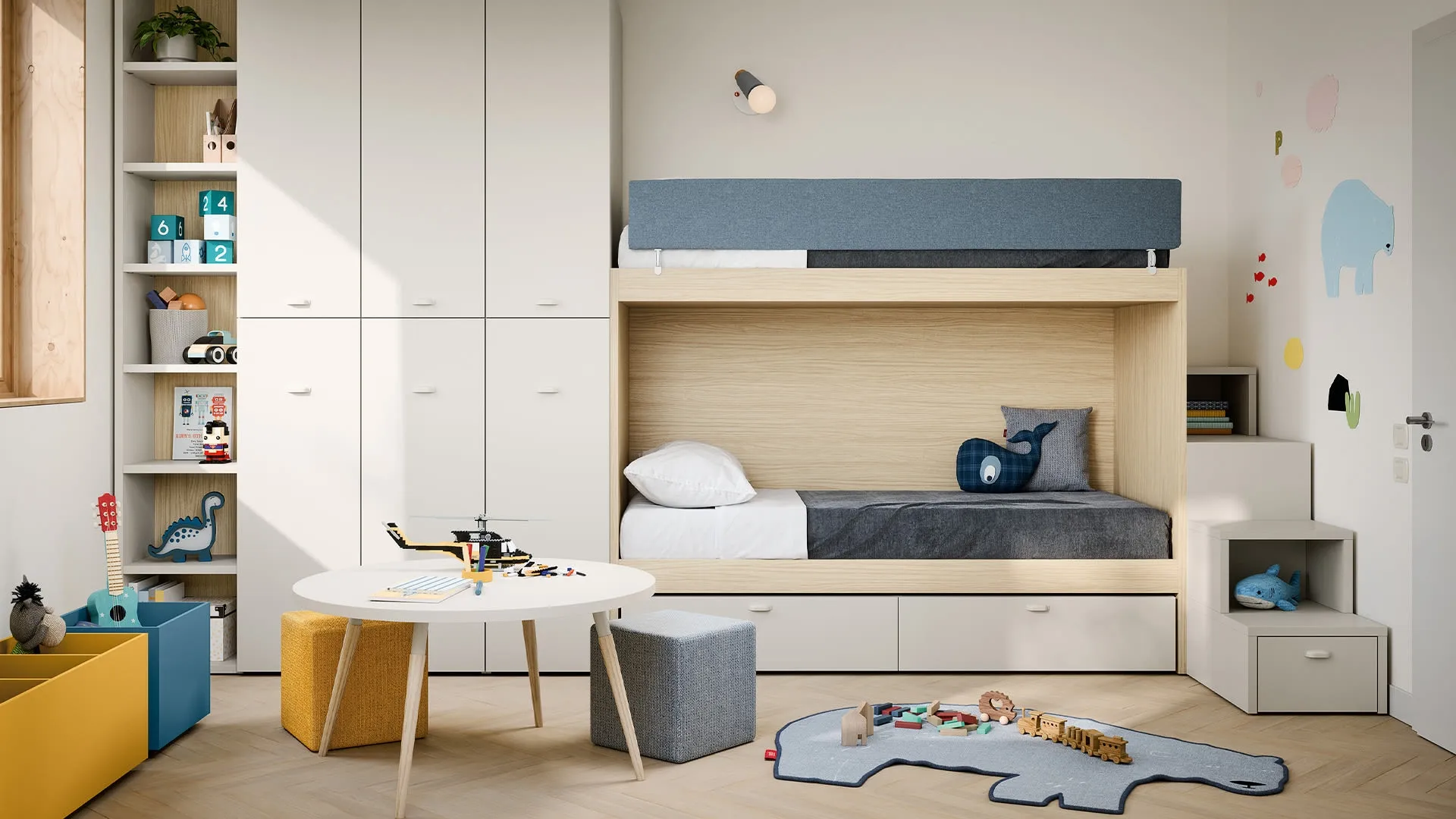 Tonalità di tendenza e progetti articolati d'eccellenza connotano le più originali proposte del noto e conosciuto brand che proponiamo in negozio. Nidi asseconda il gusto dei bambini e le esigenze dei genitori con le sue Camerette moderne con letti a castello, ideali per necessità di ogni tipo. Vieni in negozio e potrai toccare con mano tutte le più originali composizioni d'arredo con letti a castello moderne di Nidi per i più giovani. La Cameretta con letti a castello Nuk di Nidi in melaminico è un ambiente complesso da arredare attentamente, coniugando diversi accessori su misura.