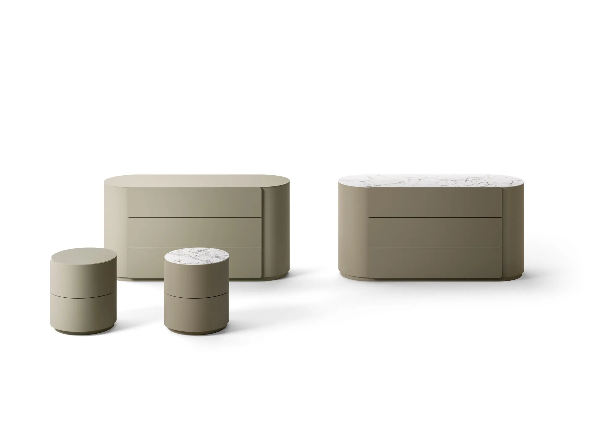 Un ricco catalogo di cassettiere Sangiacomo: i comodini design in laccato opaco, come Rondo Gruppo Notte, sono tra le proposte più originali.