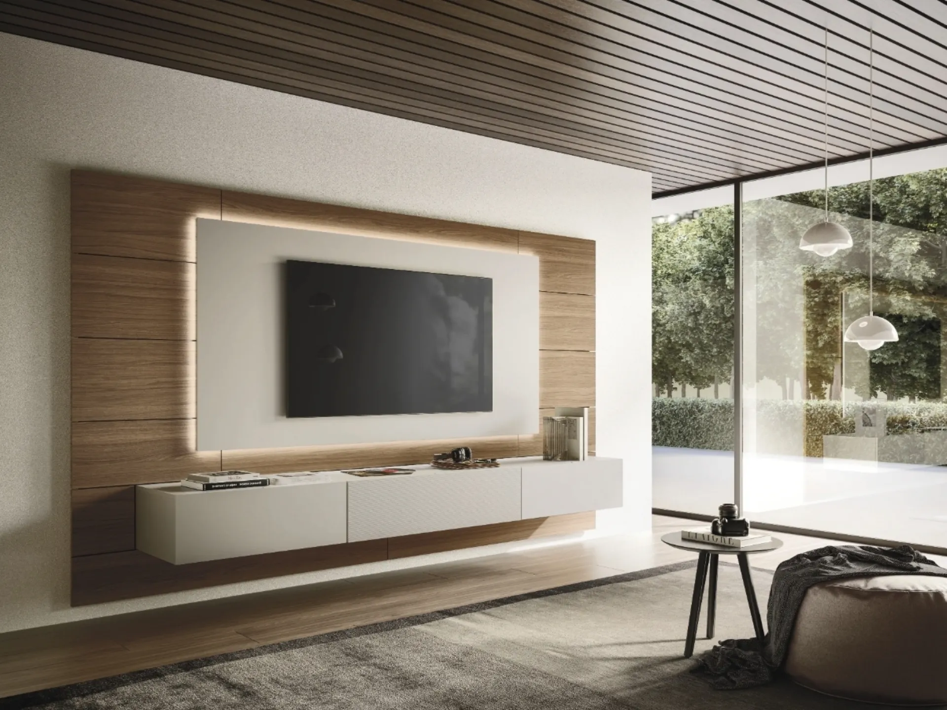 Cerchi un mobile per la TV? Ecco a te il modello Pannello Ciak di Sangiacomo in laccato opaco, perfetto per spazi design.