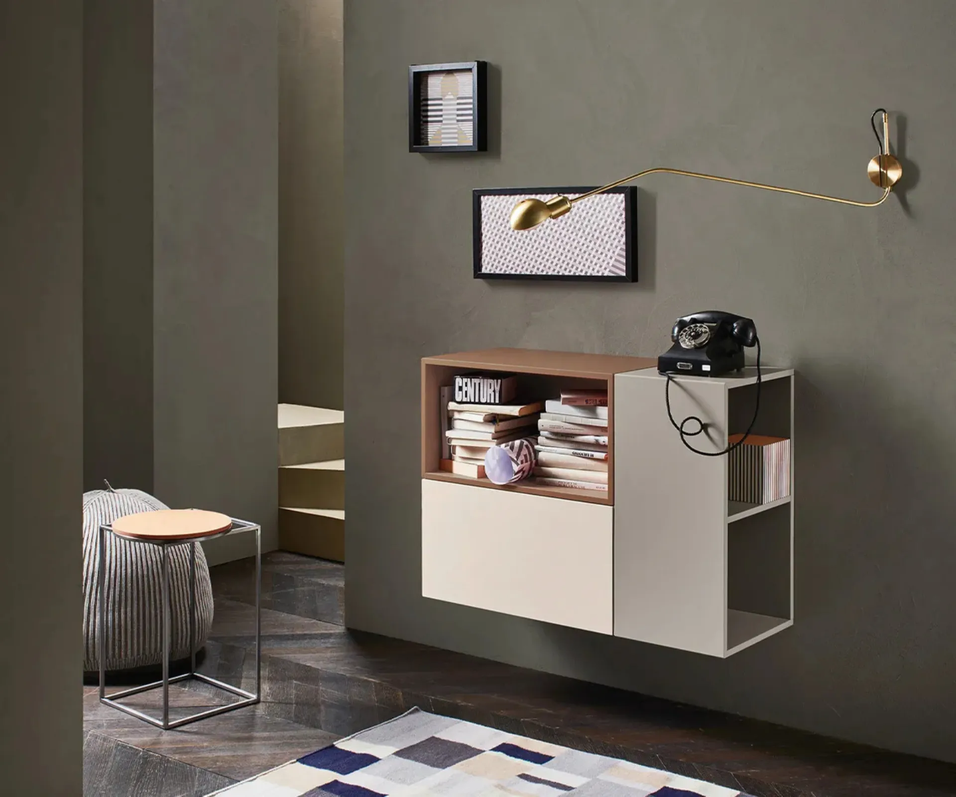 Qualunque siano le tue esigenze abitative, i Mobili sospesi ti permetteranno di risolvere le necessità contenitive del tuo soggiorno unendo al meglio praticità e design. I Mobili sospesi moderni Sangiacomo, come il modello visibile in foto, sono tra i mobili più indispensabili in ogni casa, per ottimizzare gli spazi con gusto. Scegli uno tra i multifunzionali modelli Sangiacomo che proponiamo e potrai posare sulla loro superficie sia oggetti d'uso quotidiano che tipicamente decorativo. Se desideri completare le doti di praticità del tuo soggiorno con una soluzione sospesa salvaspazio, troverai in showroom una gamma quasi infinita di soluzioni.