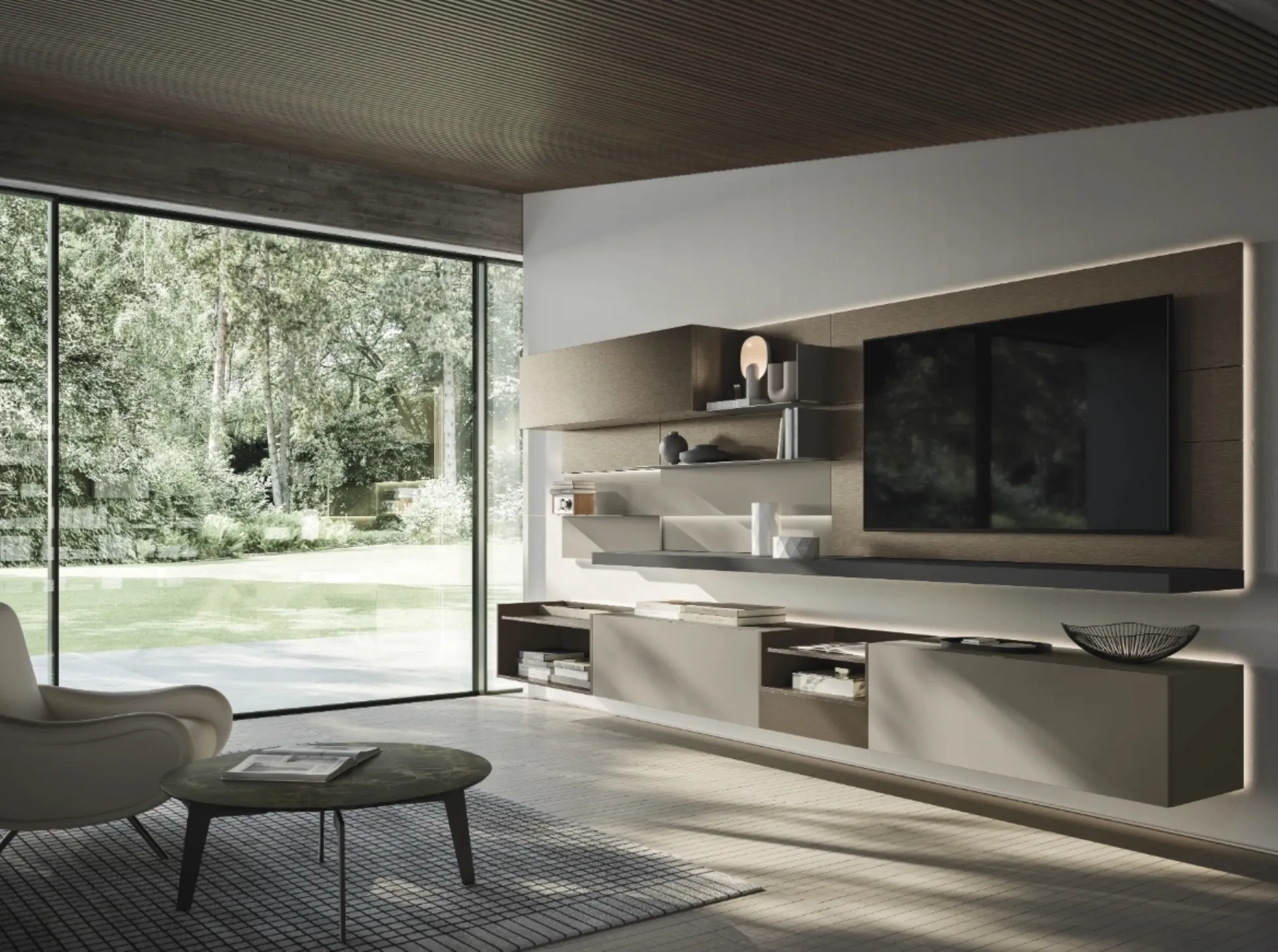 Vuoi ammobiliare un living pratico e dinamico? Ti presentiamo la parete attrezzata Lampo 024 Sangiacomo dalle forme decise moderne.