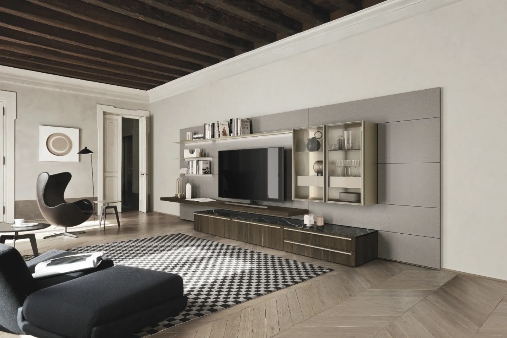 Clicca e scopri di più sulla parete attrezzata Lampo 198 della firma Sangiacomo: è la soluzione dalle linee moderne perfetta per te.