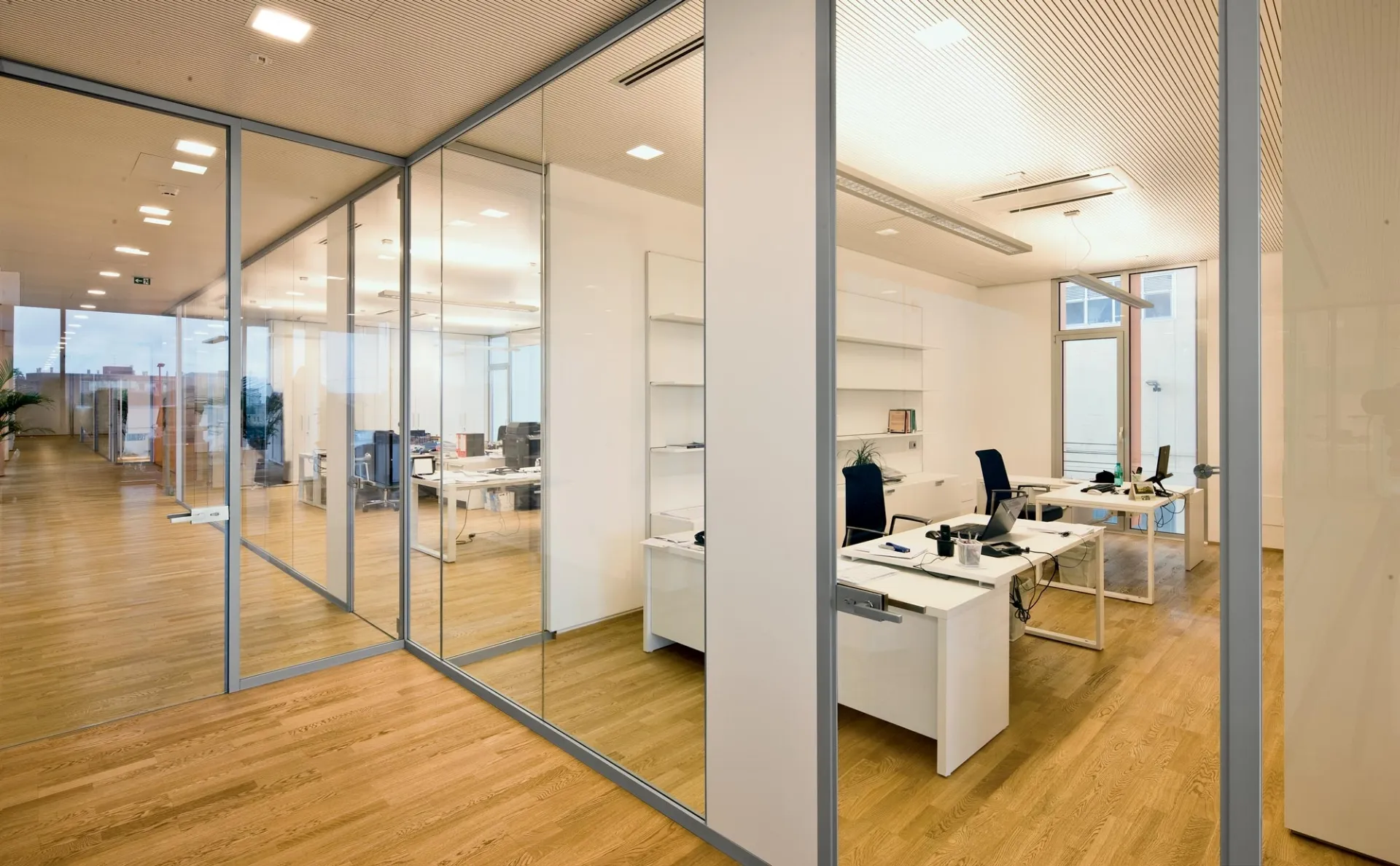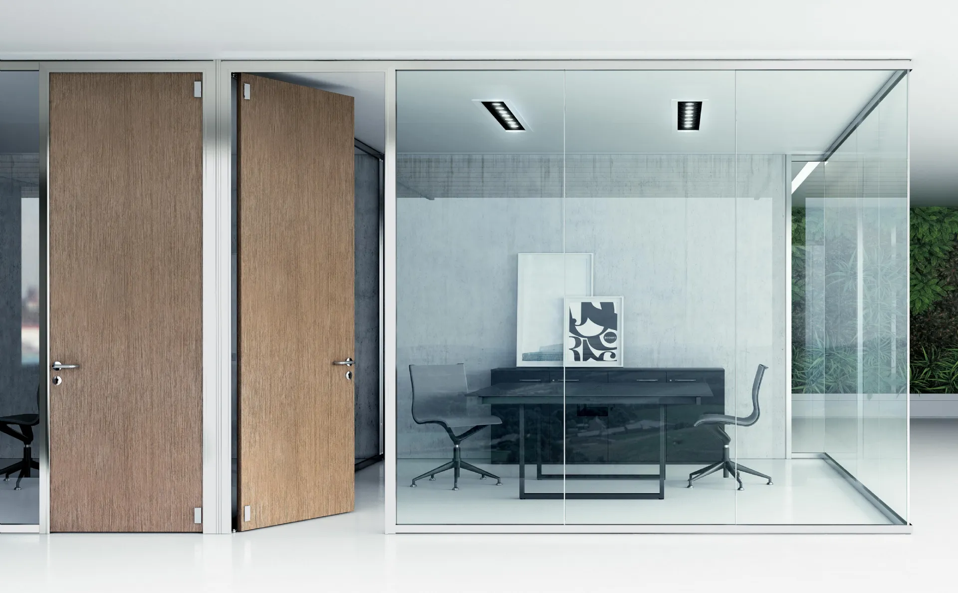 Una ricca gamma di pareti divisorie per ufficio in vetro ti sta aspettando! Il modello Parete Divisoria K Evo di Frezza ti sta aspettando!
